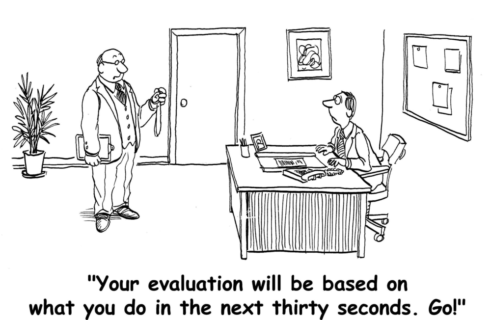 Embarrassing but true, the above cartoon is not far off from many evaluation experiences.  That is one way it can be done; I propose another, which can be completed with two simple steps: